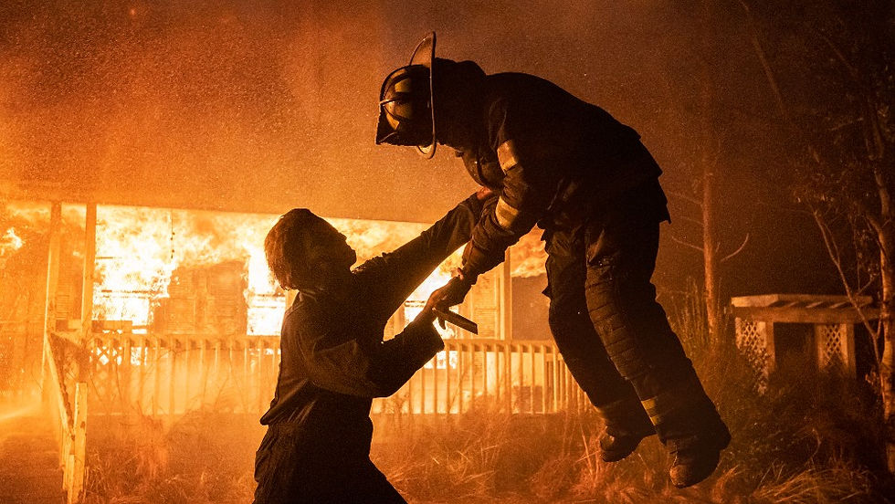 Don't worry if you haven't rewatched the 2018 film recently, Green provides plenty of flashbacks here to catch you up. We left Michael Meyers burning in the basement trap that Laurie (Jamie Lee Curtis) and her daughter and granddaughter trapped him in. They assume they had killed Michael. As Halloween Kills opens, it is clear they have not. The townsfolk seem to know about how dangerous Michael is but their decision-making and survival instincts are odd gone here. This dumb behavior routinely robs the film of menace. The insane brutality Meyers inflicts here crosses into a cartoonish quality that also keeps the film from being scary. Most of the time it is just gory. It is hard to care about anyone outside of the Strode family because everyone is just so dumb.